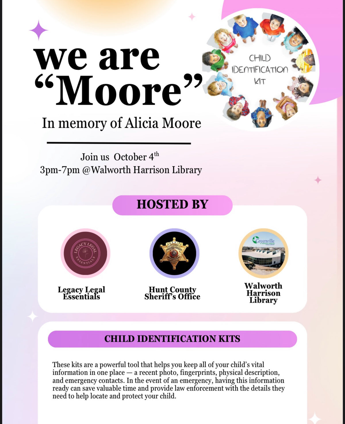 In memory of Alicia Moore, Legacy Legal Essentials hosted an event to provide child identification kits with important child information like fingerprints. We had bounce houses, sno-cones, and tables set up for sponsors to provide information about their businesses/organizations.